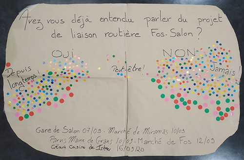 Illustration : Consultation lors des 5 débats mobiles (une gommette par réponse)